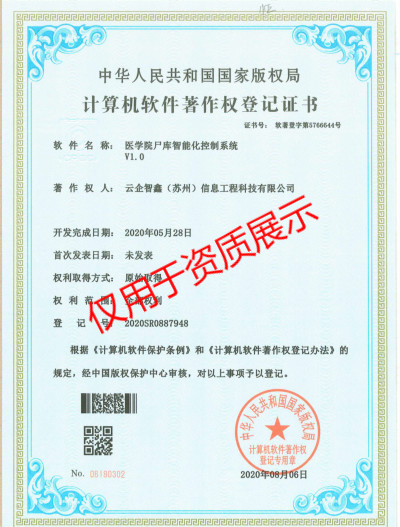 2):医学院尸库智能化控制系统-V1.0-证书登记号:2020SR0887948;