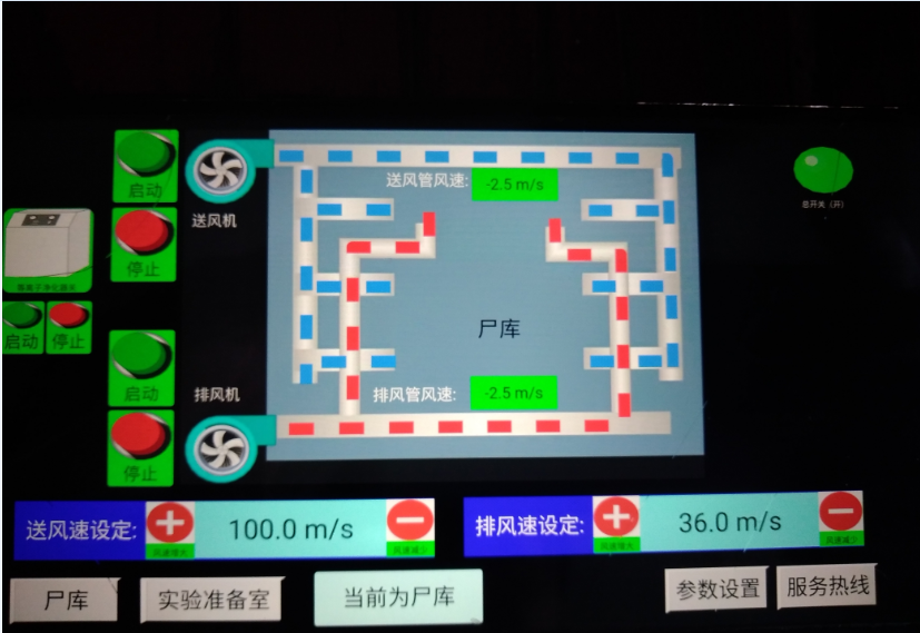 排风/送风调速(分房间单独调速控制), 一键关机控制, 等离子净化控制。