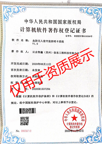 4):血防无人值守监控哨卡系统-V1.0-证书号:2020SR1537294;