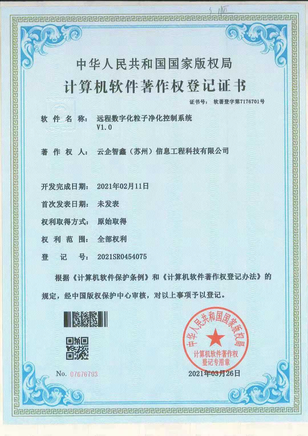 6):远程数字化粒子净化控制系统-V1.0-证书号:2021R11L1247275;