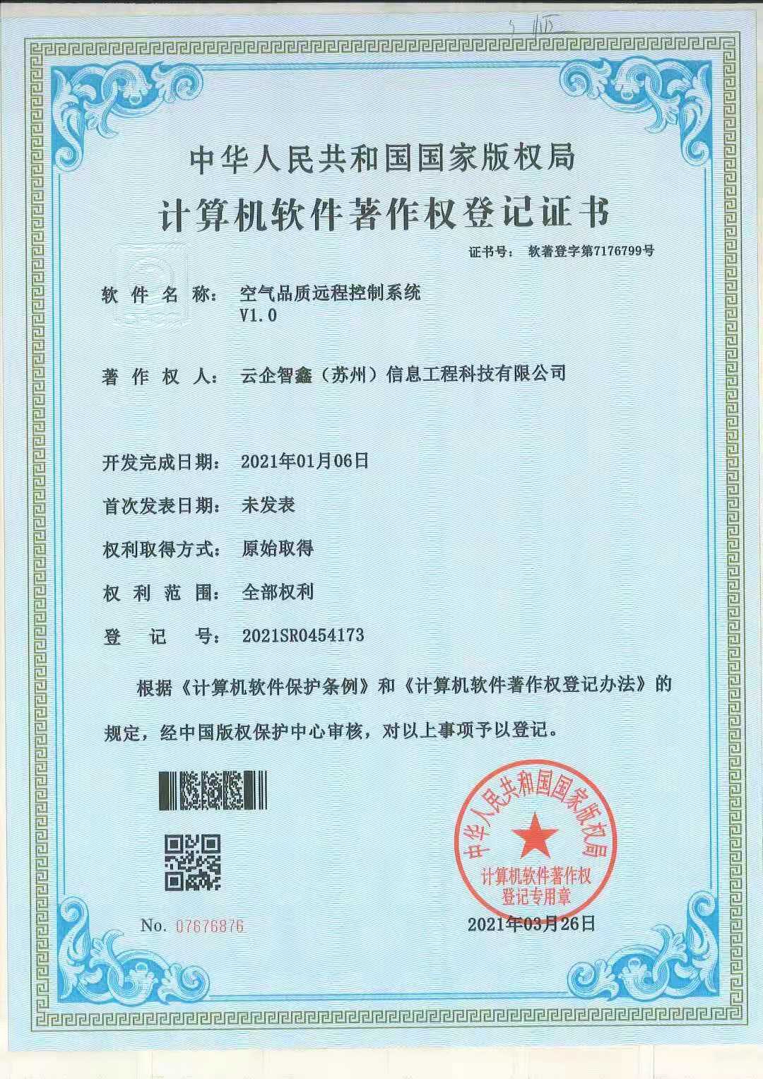 7):空气品质远程控制系统-V1.0-证书号:2021R11L1247315。